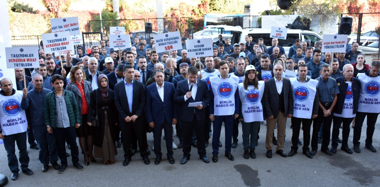 Kamu görevlilerini yakından ilgilendiren ve TBMM alt komisyonunda kabul edilerek TBMM’ de görüşülmesine başlanacak olan “Gelir Vergisi Kanunu ile Bazı Kanunlarda ve 375 sayılı Kanun Hükmünde Kararname'de Değişiklik Yapılmasına Dair Kanun Teklifinin” alt komisyonda kabul edilen halinin 399 sayılı KHK kapsamında çalışanların, çeşitli kanunlara tabi olarak İdari Hizmet Sözleşmeli çalışanların, TRT’ de olduğu gibi kadro karşılığı çalışan sözleşmeli personellerin, Taşeronların ve 657 sayılı kanuna tabi devlet memurlarının üzerindeki acımasız vergi yükünü hafifletmeyeceğini gördüğümüz için, kanun teklifi TBMM’ de görüşülmeye başlamadan önce hala düzeltilmesine imkan olduğundan, Birlik Haber Sen olarak yaşanan mağduriyetleri anlatmak ve önerilerimizi paylaşmak için bu gün burada ve tüm ülke genelinde eş zamanlı olarak toplandık.