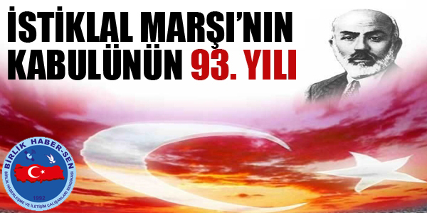 Ömrü boyunca medeniyet havzamızın birliği ve dirliği için çalışan, azmin insanı İstiklal Marşımızın şairi ilim, kültür ve fikir insanı Mehmet Akif Ersoy'u İstiklal Marşı’nın kabulünün 93. yıl dönümünde rahmetle anıyoruz.