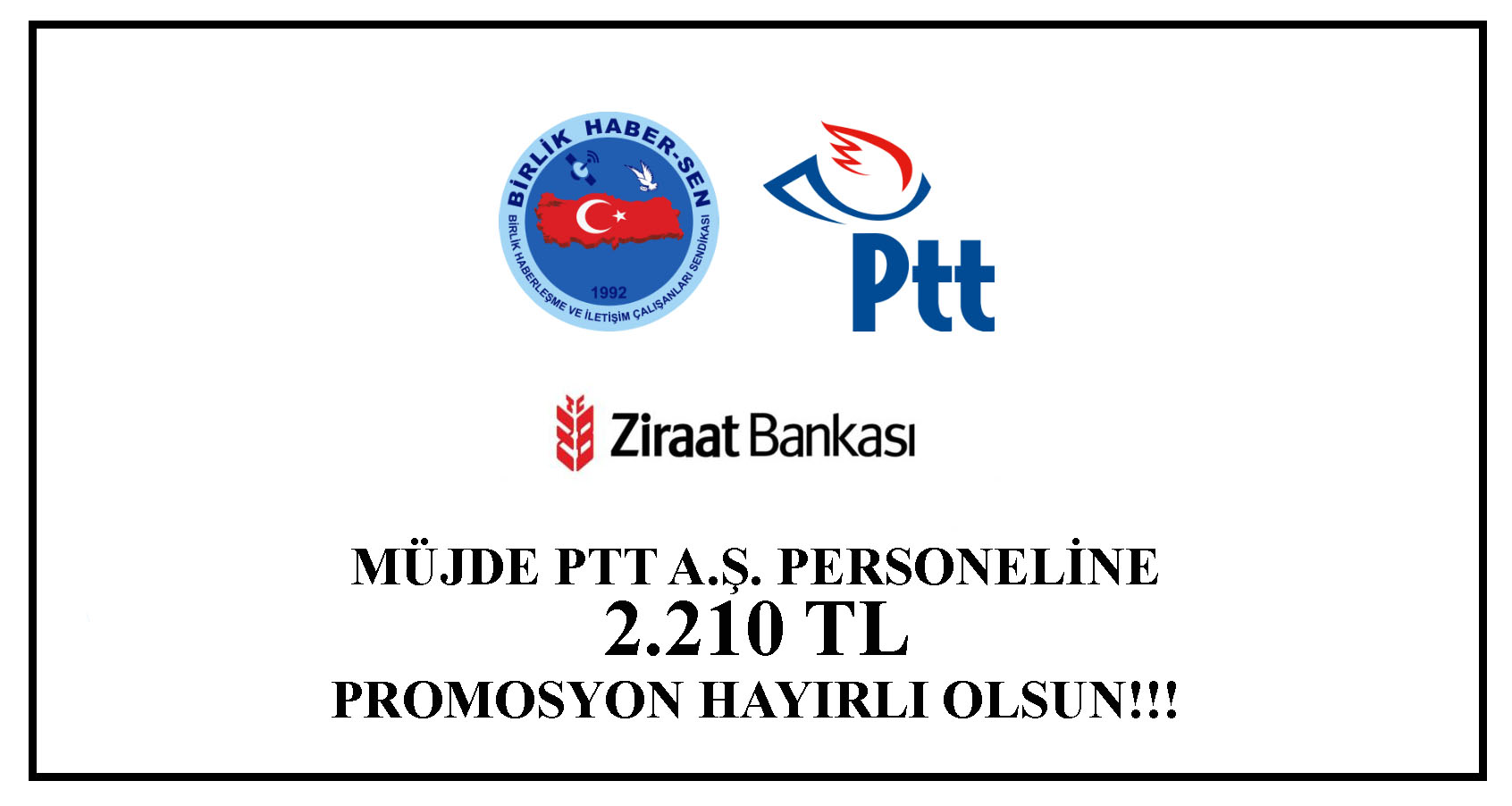 MÜJDE PTT AŞ PERSONELİNE 2.210 TL PROMOSYON HAYIRLI OLSUN!!!